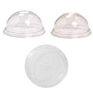 - Couvercle dôme non perforé — idéal pour smoothies, milkshakes, desserts, toppings volumineux ou présentations gourmandes. Protège efficacement le contenu sans ouverture.