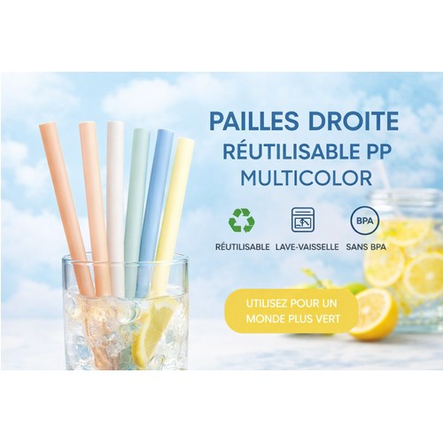 Cette paille réutilisable est un choix idéal pour allier praticité, durabilité et esthétique colorée dans toutes vos prestations.